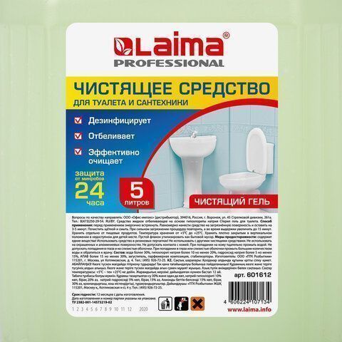 Средство жидкое 5л чистящее для уборки туалета ЛАЙМА PROFESSIONAL гель с отбел эффектом 1/4 купить в Ижевске по низкой цене оптом и дешево с доставкой