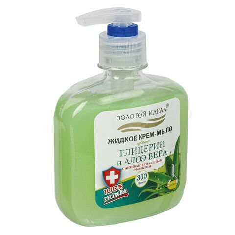 Мыло жидкое крем 300мл с дозатором антибактериальное Глицерин и алоэ вера ЗОЛОТОЙ ИДЕАЛ 1/12