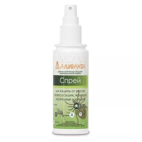 Спрей для кожи защитный от укусов кровососущих, жалящих насекомых и клещей 200мл АЛИРАНТА 1/35
