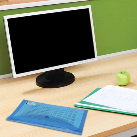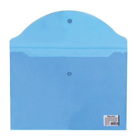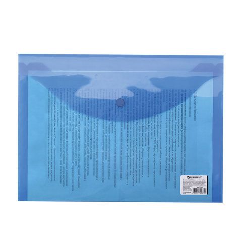 —Папка-конверт с кнопкой А4 BRAUBERG, прозрачная, синяя, до 100 листов, 0,15мм 1/15/90