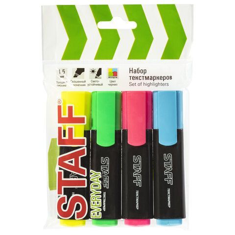 Текстмаркеры НАБОР 4шт (лим., зел., гол., роз.) STF2100 STAFF Manager 1/24