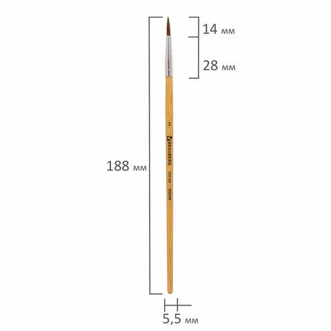 Кисть пони круглая №3 BRAUBERG 1/30/2400