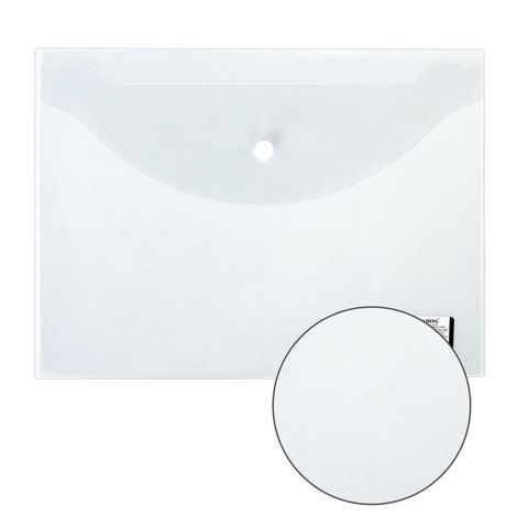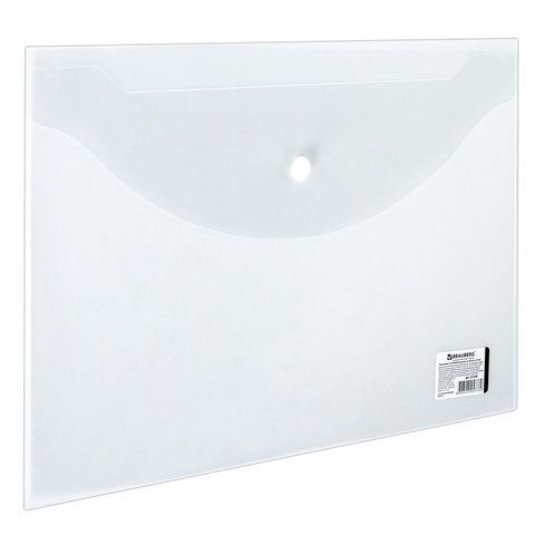 Папка-конверт с кнопкой BRAUBERG, А4, до 100 л, прозрачная, 0,15мм 1/15/90