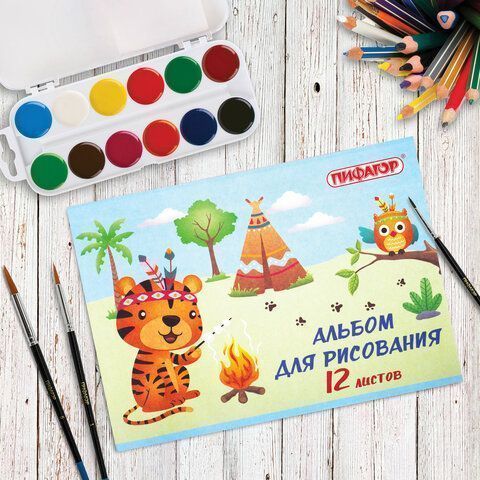 Альбом для рисования 12л А4 на скрепке Пифагор Пикник 1/12/120 купить оптом и в розницу в Ижевске