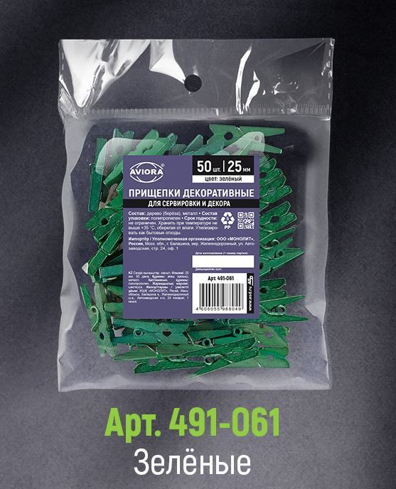 —Прищепки декоративные деревянные зеленые 25мм 50шт 1/50