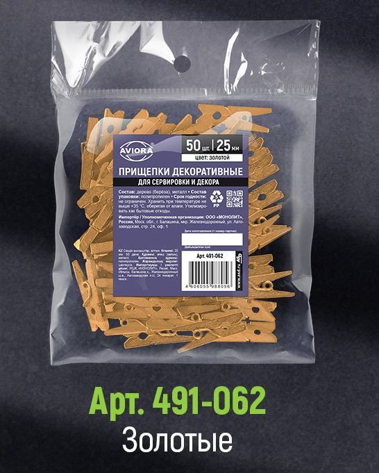 —Прищепки декоративные деревянные золотые 25мм 50шт 1/50