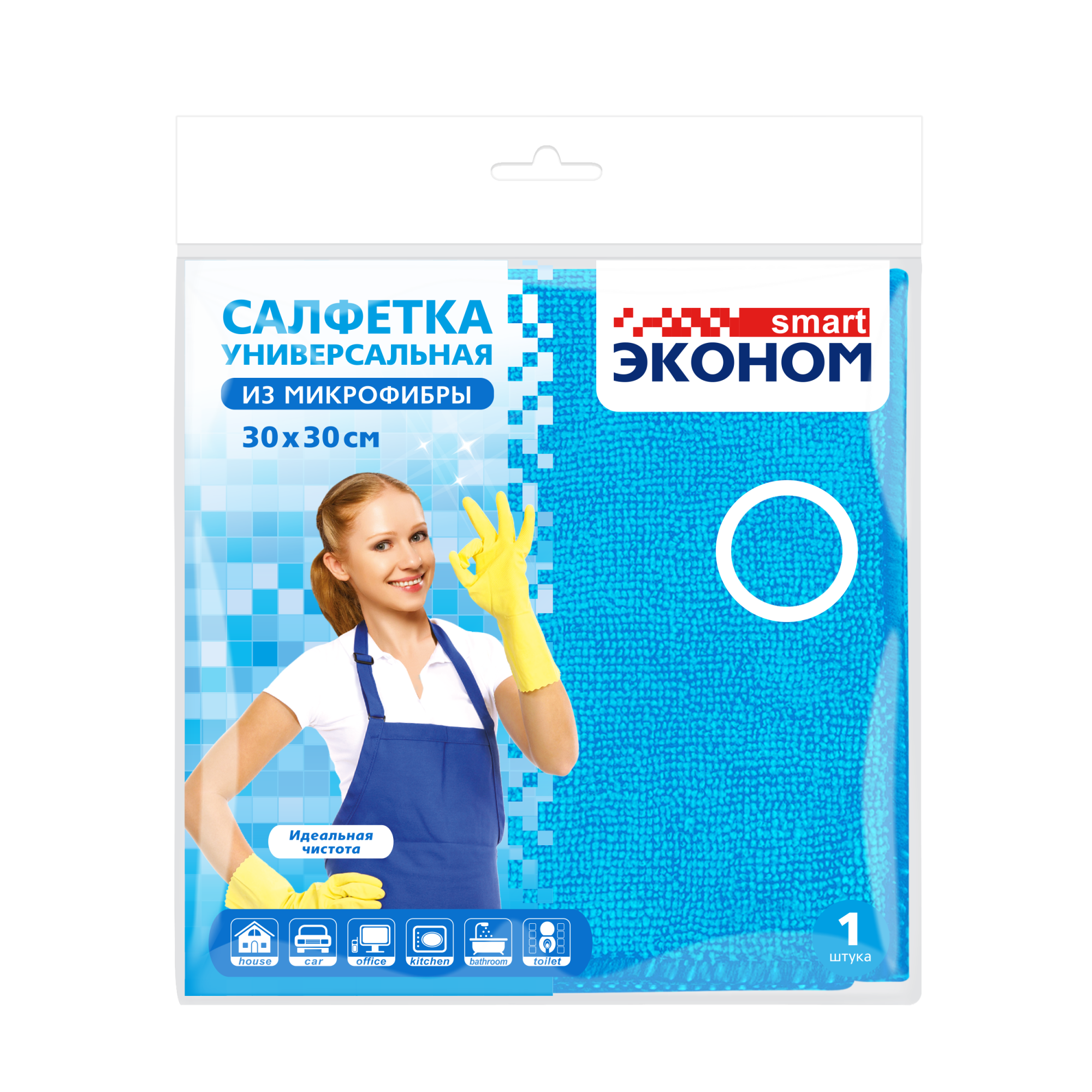 Салфетка микрофибра (30х30) универсальная в индивид,упаковке ассорти Эконом Smart 1/60 – купить хозяйственные товары в розницу с доставкой