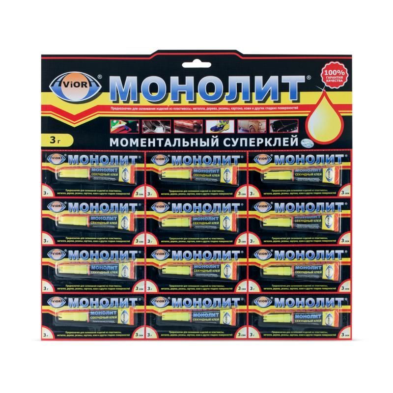 Суперклей 3гр Монолит блистер-карта 12/288 купить в Ижевске с доставкой оптом и в розницу