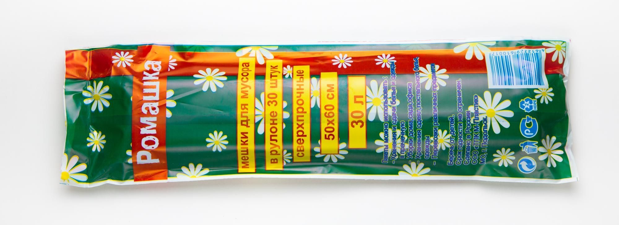 Мешок для мусора 30л рулон ПНД (50х60)-10 черные СТАНДАРТ 5,5г Ромашка (30шт) 1/70 купить в Ижевске с доставкой оптом и в розницу