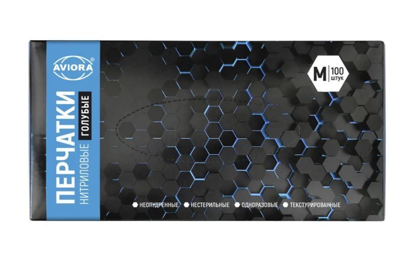 —Перчатки смотровые нитриловые неопудренные Aviora голубые M 4гр 50/500