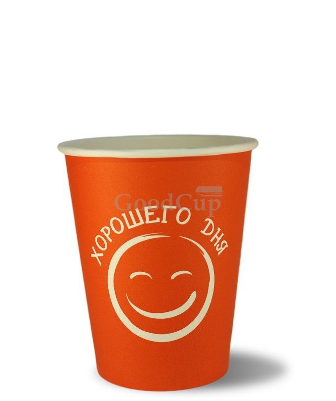 Стакан бумажный для горячего 250мл d-80 Хорошего дня оранжевый 50/1000 купить в Ижевске с доставкой - УПАК.РФ