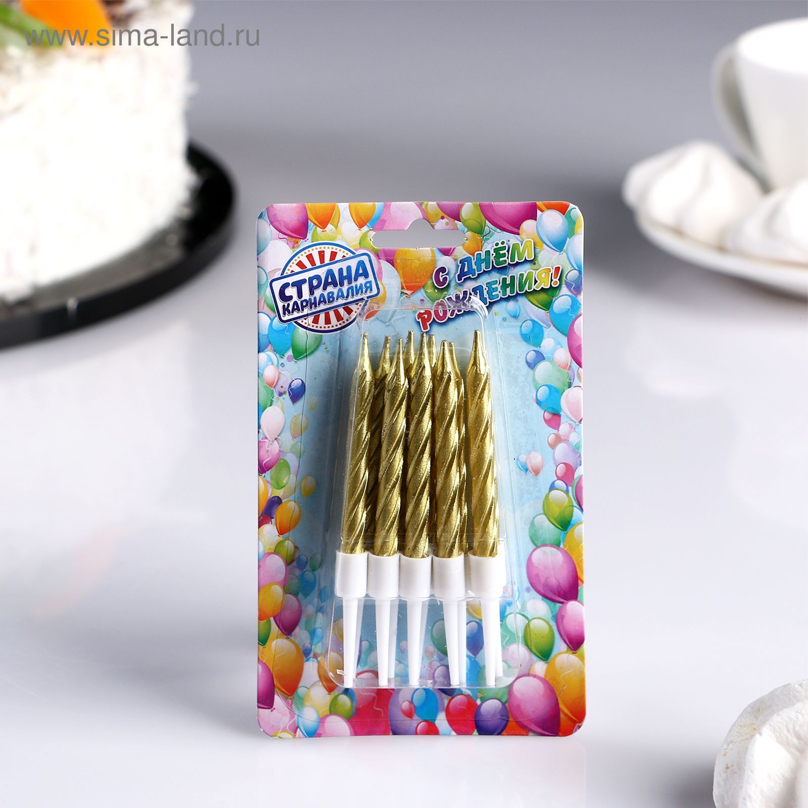 Свеча для торта с держателем 10шт золото 1/50 оптом и в розницу в Ижевске, цены в каталоге с доставкой