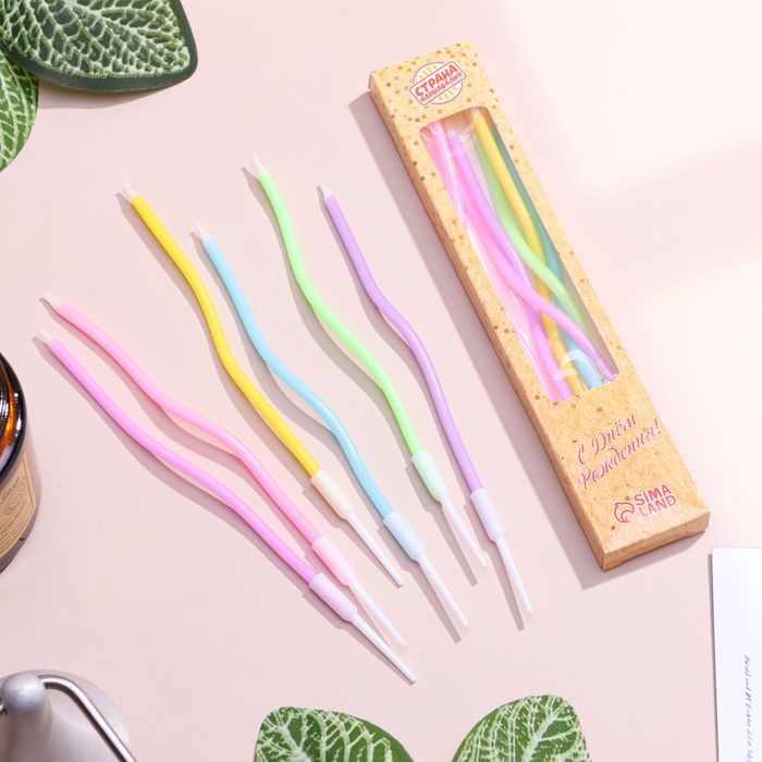 Свеча для торта Серпантин витые разноцветные 6шт 1/1 оптом и в розницу в Ижевске, цены в каталоге с доставкой
