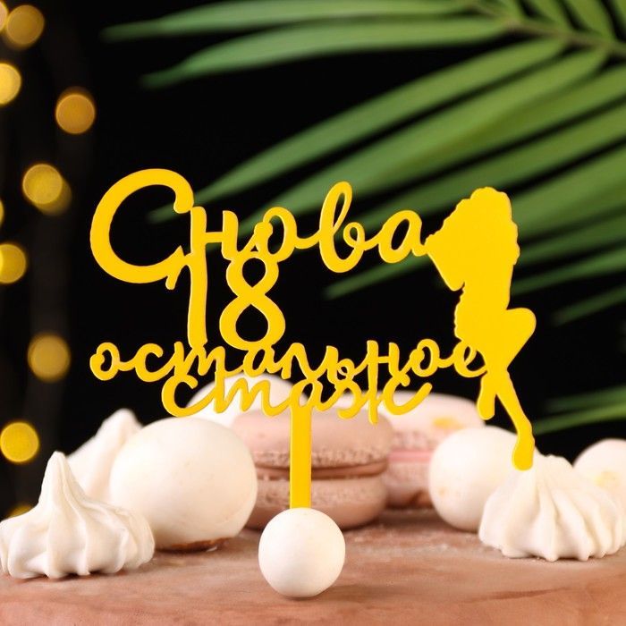 Топпер для торта Снова 18, остальное стаж, золотой 1/20 оптом и в розницу в Ижевске, цены в каталоге с доставкой