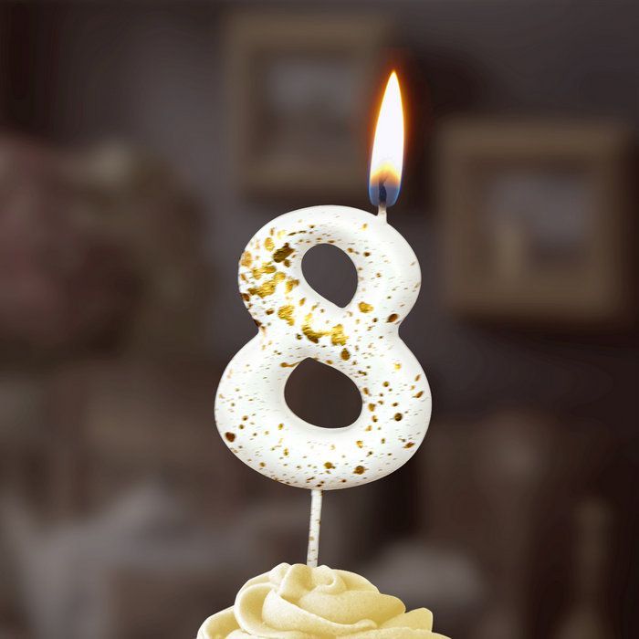 —Свеча для торта Белые брызги Цифра 8 1/30