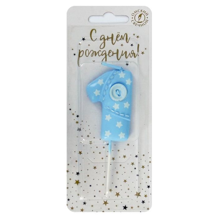 Свеча для торта с пуговкой 1 голубая 1/30 оптом и в розницу в Ижевске, цены в каталоге с доставкой