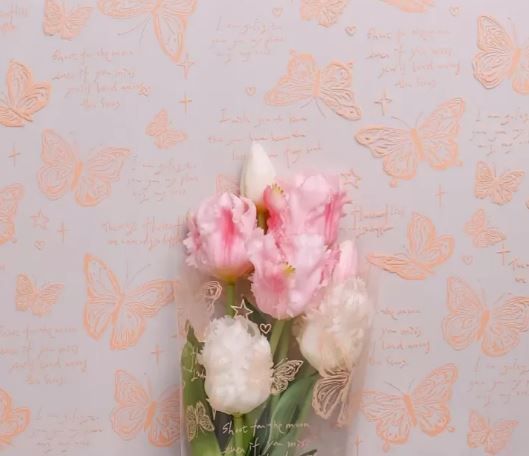 Ролик 70см х8м пленка полипропилен с рисунком Бабочки оранжевый 1/10