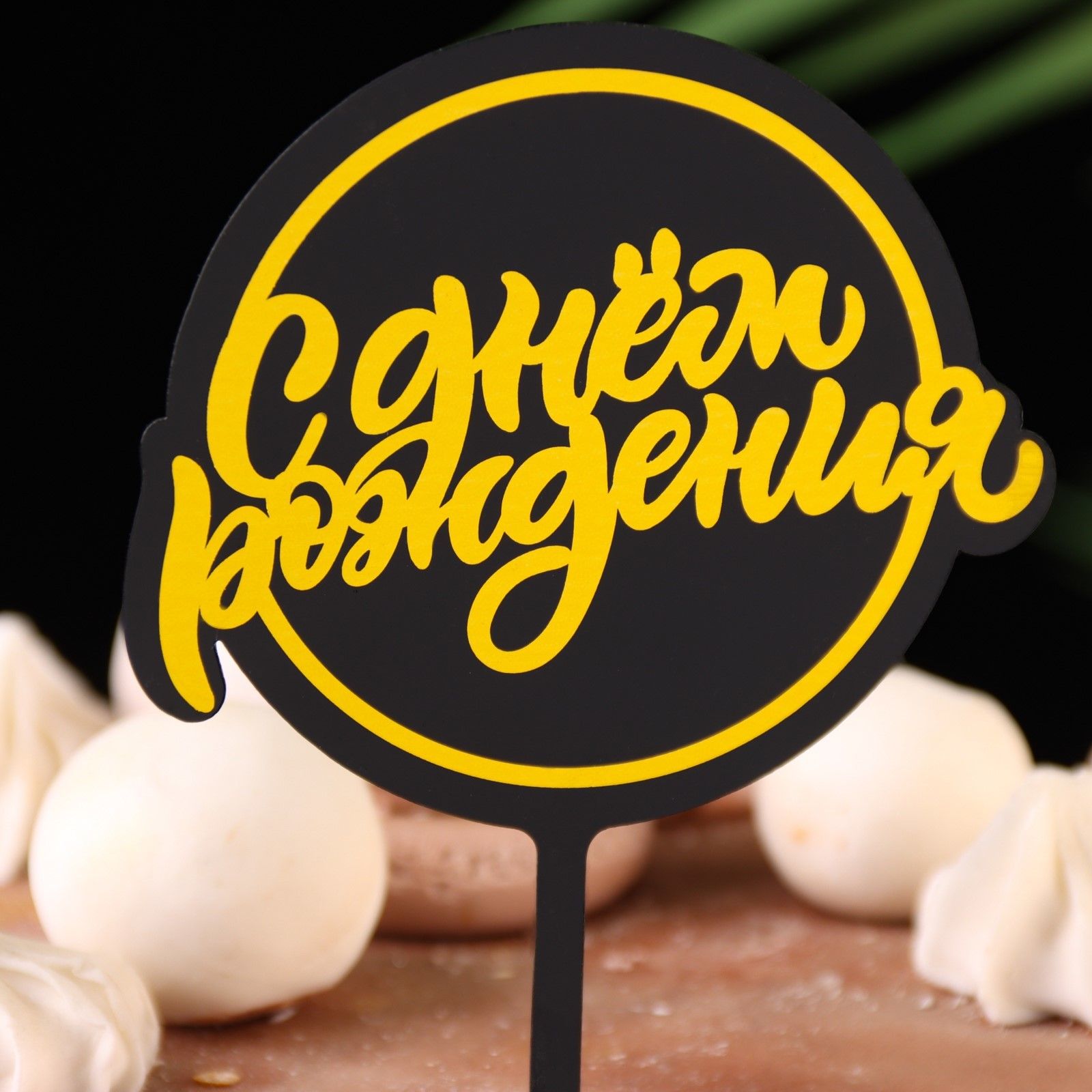 Топпер для торта С днем рождения! черный желтый 1/20 оптом и в розницу в Ижевске, цены в каталоге с доставкой