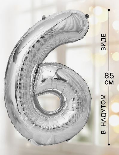 Шар фольгированный Цифра 6 85см цвет серебро 1/20/500 оптом и в розницу в Ижевске, цены в каталоге с доставкой