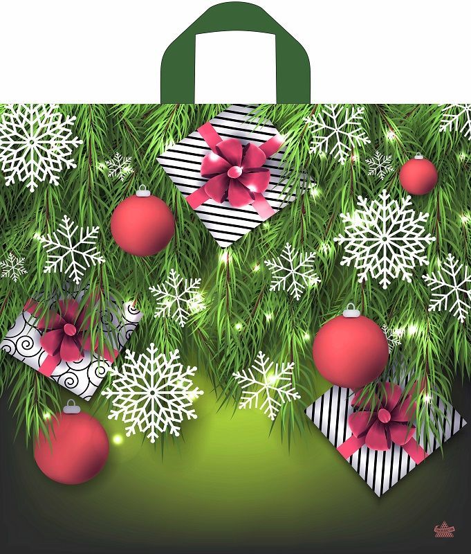 НГ Пакет с петлевой ручкой (42х44)-70 Подарки в елках ТИКО 50/300 купить оптом и в розницу в Ижевске с доставкой недорого