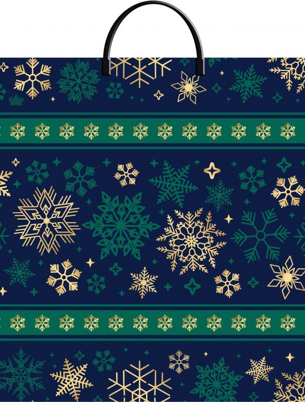 НГ Пакет с пластмассовыми ручками (40х44)-100 Изумрудные снежинки ТИКО 10/100 купить оптом и в розницу в Ижевске с доставкой недорого